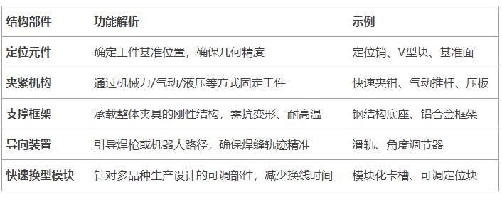 刚性夹具:适用于高精度要求的批量生产(如汽车底盘焊接)。